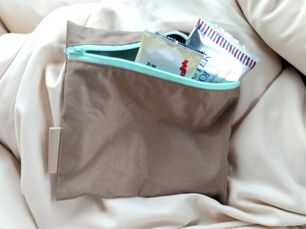 簡単裏地付きフラットポーチの作り方です。初心者さんでも作れるように、写真付きで詳しく解説しています。